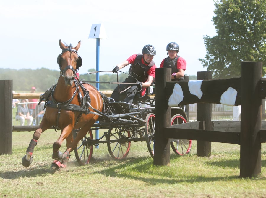 Die fĂŒr den RV Fredenbeck startende Pia Grundmann war mit Darisco (fast) nicht zu schlagen. Nach Platz vier in der Dressur konnte sie sowohl die GelĂ€ndeprĂŒfung als auch das abschlieĂende Kegelfahren fĂŒr sich entscheiden und sicherte sich den Sieg in der Kombinierten PrĂŒfung der EinspĂ€nner Ponys Kl. M. Lara Hahlbohm vom RFV Dannenberg sicherte sich mit Ravello nach den PlĂ€tzen 3 (Dressur), 2 (GelĂ€nde) und 3 (Kegelfahren) auch Platz zwei in der Kombinierten PrĂŒfung der EinspĂ€nner Pferde Kl. S. Sven Kneifel vom RFV Wunstorf gehörte mit Fine, Frieda, Mason THS und Miami zu den 18 VierspĂ€nnern, die um den Titel des Deutschen Meisters kĂ€mpften und belegte Rang fĂŒnf im GelĂ€nde sowie Platz acht insgesamt. Text und Fotos: K. Blasig