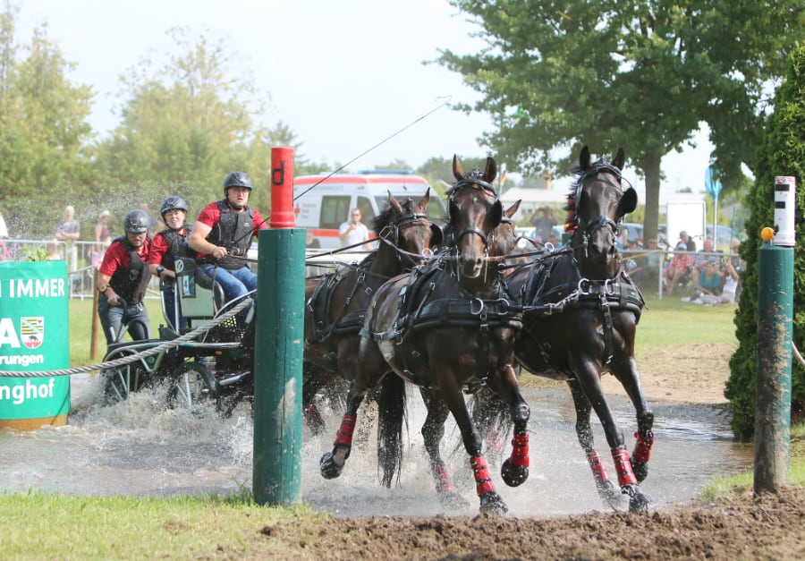 So standen natĂŒrlich die Deutschen Meisterschaften im Mittelpunkt, doch im Rahmen der diesjĂ€hrigen Bösdorfer Fahrsporttage wurden auch die ZweispĂ€nner-Landesmeisterschaften der Ponys und Pferde sowie die Sichtungen zur Pony-WM und weitere PrĂŒfungen ausgetragen, so dass sich das Team um die beiden Turnierleiter Michael MĂŒller und Jörg Stottmeister vom 7. bis 10. August 2025 ĂŒber insgesamt 126 Gespanne aus sieben Nationen freuen konnten. Dabei machten sich auch einige Fahrer aus dem Pferdesportverband Hannover auf den Weg nach Bösdorf und kehrten erfolgreich aus Sachsen-Anhalt zurĂŒck.