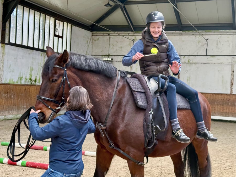 Dr. Meike Riedel, Diplom-Sportwissenschaftlerin, startete am Samstag in der ehemaligen Verdener Reit- und Fahrschule, mit ihrem Referat zum Thema „Heranführen von Anfängern an das Pferd“. Sie beschrieb, wie groß die Bewegungsdefizite vieler Kinder sind, die diese dann mit auf das Pferd nehmen. „Wir müssen die Kinder in Bewegung bringen, denn die Bewegungsmuster, die in der Kindheit nicht eingeübt werden, sind später kaum noch nachzuholen“. Später brachte sie die fast 50 Ausbilder/innen selbst in Aktion und zeigte mit Utensilien wie Trampolin, Eimern, Bällen und Balancepads, wie leicht es möglich ist, mit Spaß und Freude Kindern zu sinnvoller Bewegung zu verhelfen. Vom Pferd aus und auch zu Fuß galt es, verschiedene Stationen in möglichst kurzer Zeit zu durchlaufen, Dinge von A nach B zu bringen, zu werfen, zu fangen, zu würfeln, rückwärts und vorwärts zu laufen, selbst zu springen, zu hüpfen – alles Bewegungen, die zu verbesserter Koordination führen.