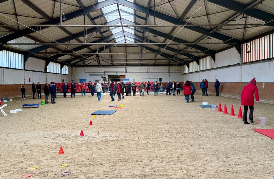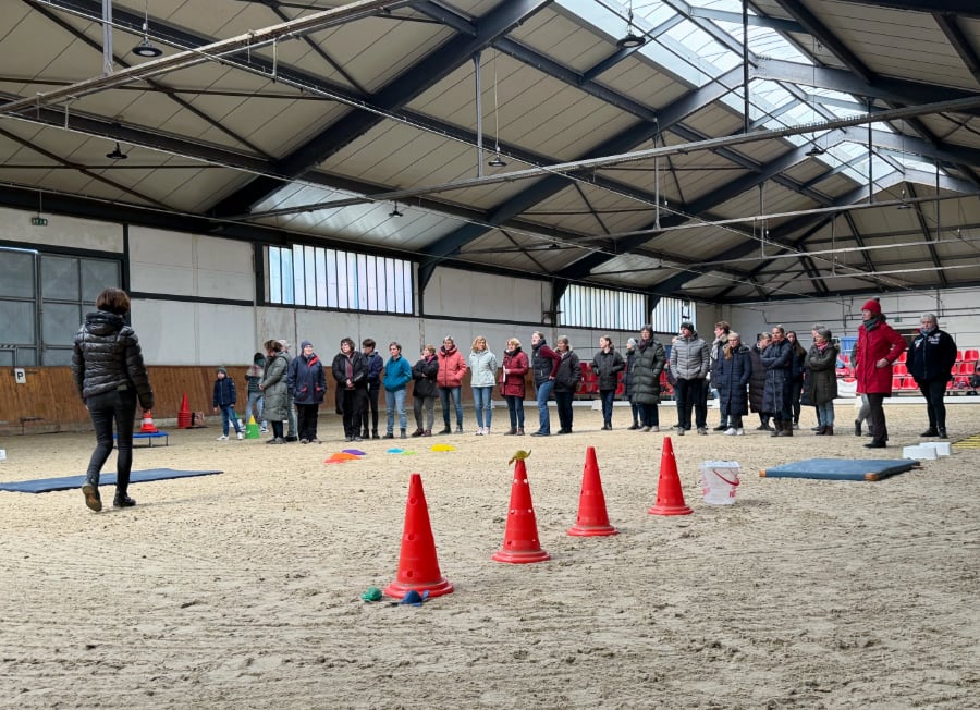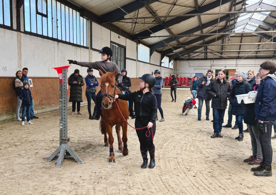 Die Rückmeldungen waren überaus positiv. Das gibt mir das gute Gefühl, dass wir im PSV Hannover hinsichtlich der Ausbildung auf einem positiven Weg sind“, freute sich Gudrun Hofinga, die dieses Wochenende gemeinsam mit ihrer Kollegin Beate Greifenberg organisierte, die freundlicherweise kurzfristig das Kaffee- und Teekochen übernahm, da der Caterer ausgefallen war. Die Halle war von den Mitarbeitenden, die dort beschäftigt sind, liebevoll vorbereitet worden, eine größere Tribüne war aufgebaut, das Viereck und später der Parcours waren mit Blumen dekoriert – dieses Ambiente führt zusammen mit der Beschallung unter Federführung von Jan Philipp Herrig von der Firma JPBackground zu einer perfekten Lernatmosphäre. Tina Pantel/ Gudrun Hofinga, Fotos: Pantel