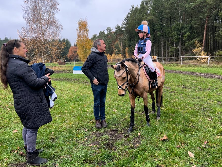 Die Sichtungen in der Dressur liefen auf zwei Vierecken mit Kommentierung von Susann Bendler und Hanna Rogge. Beide berichteten, dass die Kinder größtenteils sehr aufgeregt gewesen waren. Auf dem kleinen Geländeplatz ging es für die jungen Talente über zwei Steilsprünge und zwei Oxer (Disziplin Springen). Anschließend durften sie dann auf der Geländestrecke mit Graben, Wasserdurchritt und verschiedenen Geländesprüngen zeigen, auf welchem Leistungsstand sie bereits sind. Michael Meier kommentierte die Ritte. Wer warme und regendichte Kleidung eingepackt hatte, war an diesem grauen und nasskalten Novembertag gut gewappnet gegen die Kälte. Da es aber nicht regnete, waren die Bedingungen zum Reiten gut, wie Kathrin Völksen berichtete. Fotos: Völksen