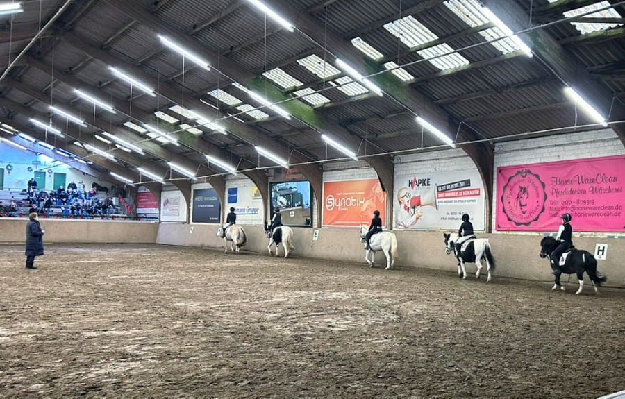 Als Gudrun Hofinga, Fachkraft für Lehrarbeit im PSV Hannover, nach langer Fahrt im Reit- und Fahrverein Hameln eintraf, war die Abreitehalle bereits mit vielen aufgeregten jungen Reiterinnen gefüllt. Einige Ausbilder halfen beim Nachgurten und gaben letzte Anweisungen. Schon ging es los: Von der Führzügelklasse bis zum Dressurreiterwettbewerb wurde fleißig geritten, einige Reiterinnen trauten sich auch in den Dressurwettbewerb auf E-Niveau.