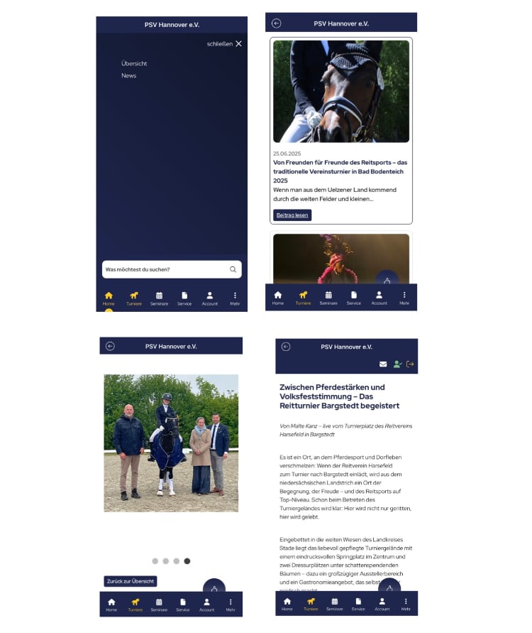 Das Tool der Turnierberichtserstattung ist in der PSV-App nun unter dem Bereich Turniere/ News online für alle, die das PSV-Abo (jährliche Service-Gebühr 25 Euro) abgeschlossen haben. Mit dem kostenpflichtigen Turnier-Tool der App können Turnierreiter, Fahrer und Voltigierer alle Ausschreibungen einsehen, wenn sie sich im Paywall-Bereich eingeloggt haben. Dieser kostenpflichtige Bereich wird ab sofort ergänzt durch den redaktionellen News-Bereich mit sportlicher Berichterstattung aus dem Verbandsgebiet. Veranstalter können Berichte über ihre eigenen Turniere/ Veranstaltungen per Mail schicken an: support@psvhan.de