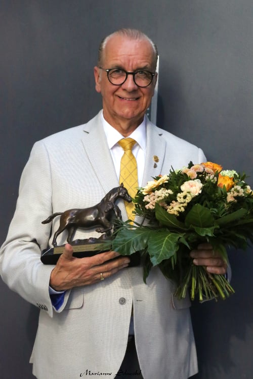 Auch Dr. Uwe Clar, Vorsitzender des Stammbuches für Kaltblutpferde Niedersachsen ließ es sich nicht nehmen, für die partnerschaftliche Zusammenarbeit beider Verbände zu danken. Annette Prieß, Leiterin der niedersächsischen Reitponyquadrille reihte sich in die Reihe der Gratulanten ein, war Joachim Völksen doch einst der Initiator dieser überregional bekannten Quadrille. Sichtlich gerührt nahm Joachim Völksen die Ehrungen und Dankesreden auf.