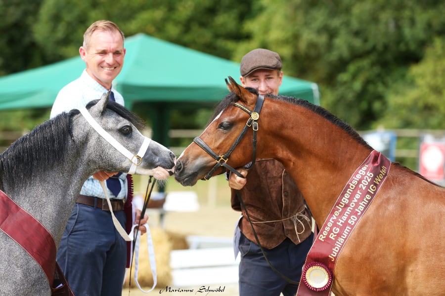 Stenderups Olympic/ Mynach Flower Power ist die Anstammung der Reservesiegerin der Jugendklasse Rightfield Orchidee M ( Z u. B: Georg Michelbrand, Rechterfeld). Die noch jugendliche Braune empfahl sich als absolute Zukunftshoffnung. Das Gestüt Leybucht zum Zweiten zeigte mit Leybuchts Ginny v. Penymorta Bailley/ Brynseion Cadivor ein Welsh A Stutfohlen, wie man es sich schöner nicht wünschen kann. Platz 1 war dieser bewegungsstarken jungen Lady damit sicher.