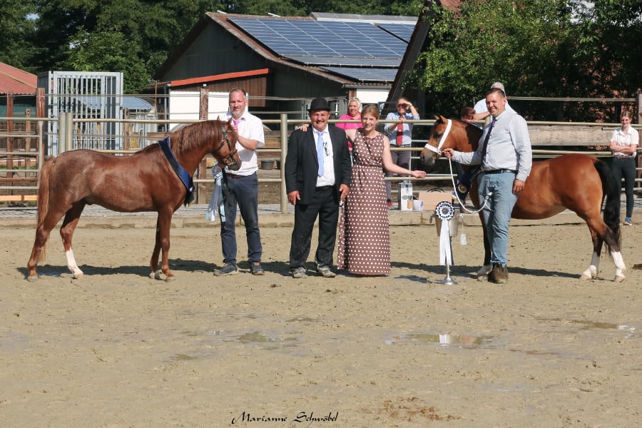 Kay Wassermann und Sonja Kaiser hatten, wie schon so oft, die Meldestelle fest im Griff, während Sabine Schäm und Meike Uekermann die Reitklassen betreuten. Marc Aerts ( Prefix Voermanhof) richtete in diesem Jahr die Schauklassen und Claudia Clausnitzer ( Prefix Tewdwr) die Reitklassen. Die braune fünfjährige Welsh A Stute Aleanto Klara v. Voermanhof Nicolas/ Friars Rebel aus der Zucht von H. Spiekermann, Bochum und im Besitz der Zuchtgemeinschaft Spiekermann gefiel dem Richter besonders, so dass sie in diesem Jahr zum Tagessieger über alle Klassen gekürt wurde. Die charmante Stute punktete besonders durch ihren raumgreifenden Trab.